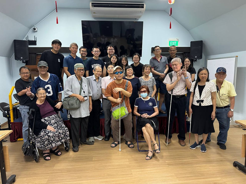 As Singapore becomes more digital, our team aims to bridge the gap between technology and accessibility for individuals with visual impairments. We organise workshops for visually impaired individuals and caregivers to learn how to use assistive tools on their smartphones such as VoiceOver and TalkBack, and we also develop simple, easy-to-follow manuals to support future users and caregivers. Beyond digital skills, we also work closely with the White Cane Club under SAVH. Run by both sighted and visually impaired volunteers, the club supports the social, recreational and welfare needs of its members through activities such as Dining in the Dark, workshops, exercise sessions and community events.